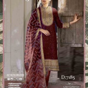 BAREEZE’ Summer lawn embroider collection arrival for eid 3pc lawn fully embroider shirt with plane trouser & with embroidered bamber chiffon dupata