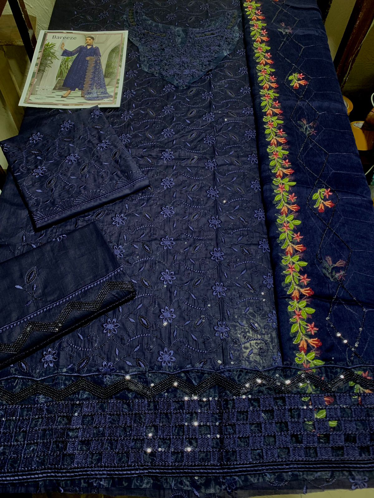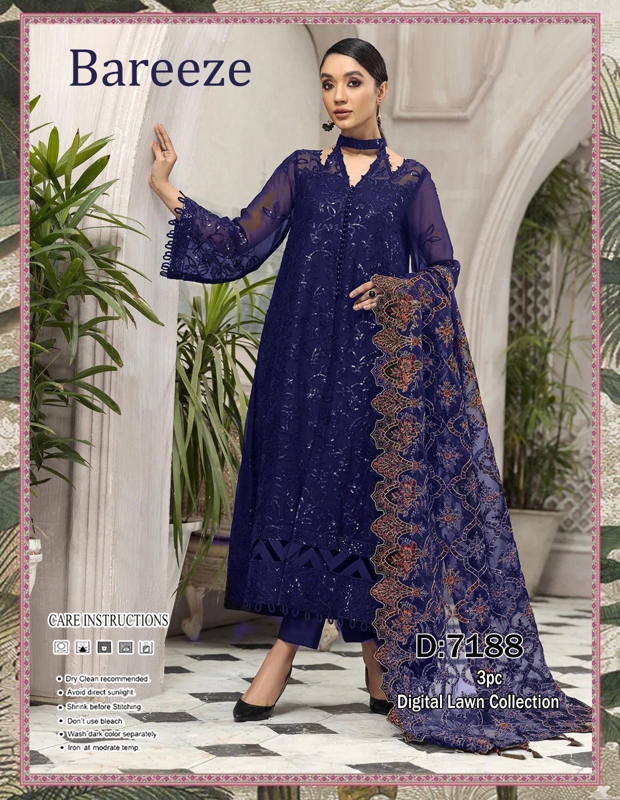 BAREEZE Summer lawn heavy embroided collection arrival for eid 3pc lawn fully embroided shirt with embrioded trouser & with embrioded bamber chifoon dupata
