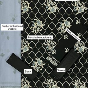 LIME ‘ LIGHT  lawn embroidered collection arrival for eid 3pc lawn fully embroider shirt with plane trouser & with embroidered bamber chiffon dupata