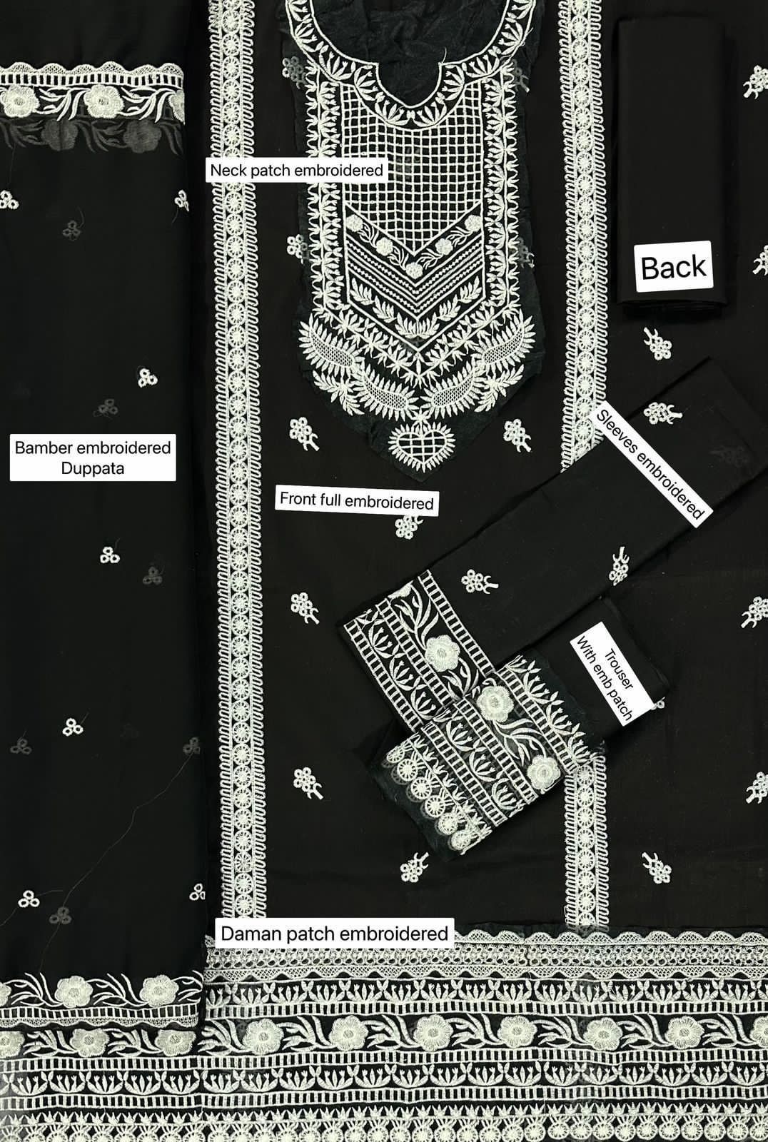 LIME ‘ LIGHT  lawn embroidered collection arrival for eid 3pc lawn fully embroider shirt with plane trouser & with embroidered bamber chiffon dupata