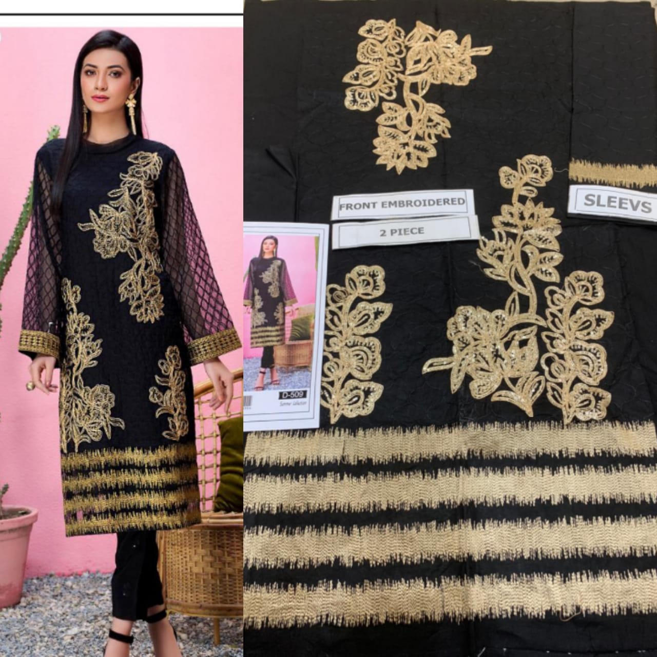 Kaseriya 2pc suit fully emb shirt with neck patch with plain trouser