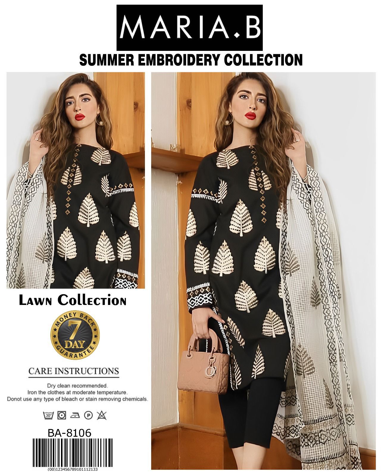 MARIA.B Summer lawn embroider collection arrival for eid 3pc lawn fully embroider shirt with plane trouser & with embroidered bamber chiffon dupata