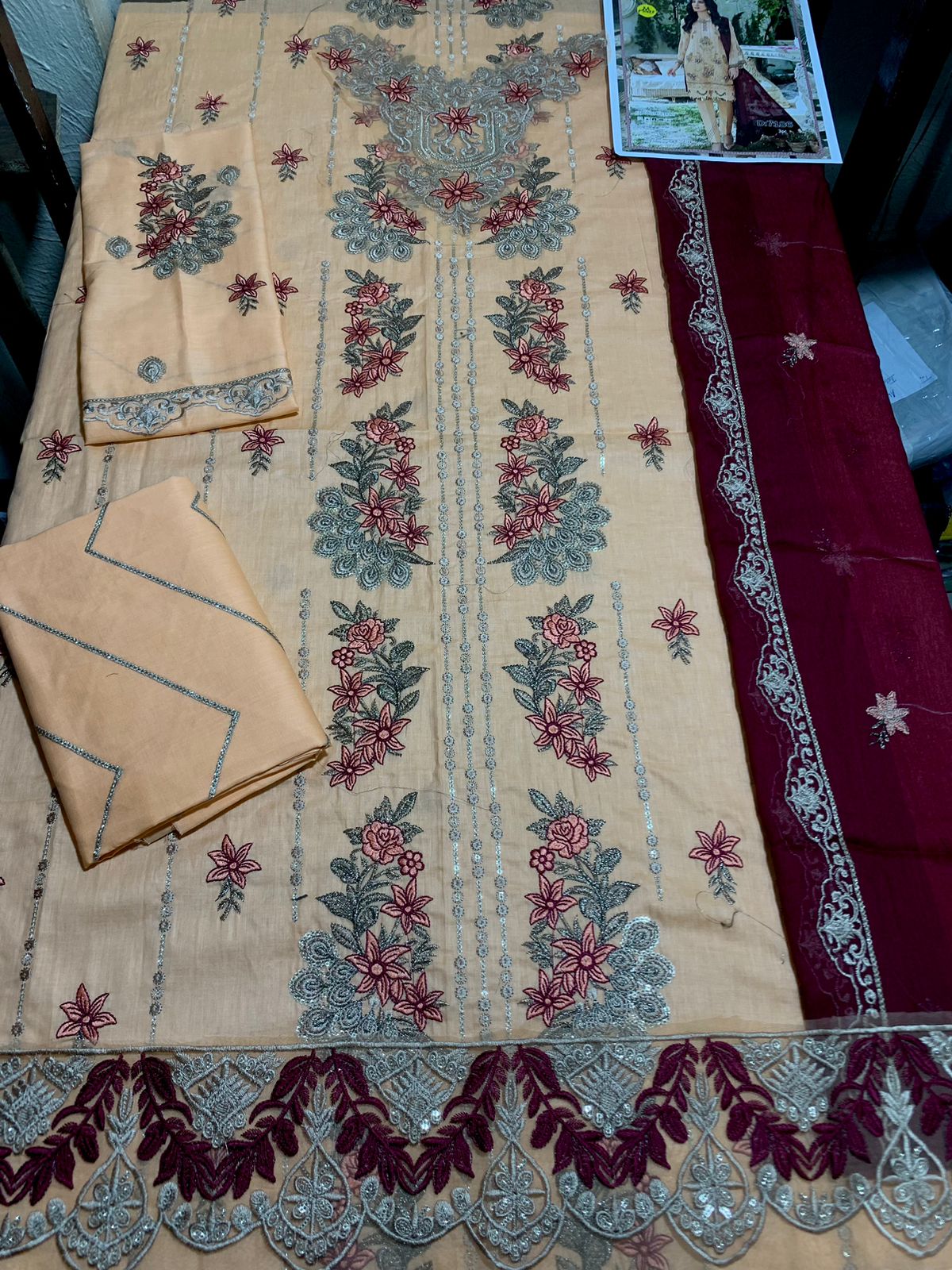 3pc lawn fully embroider shirt with plane trouser & with embroidered bamber chiffon dupata