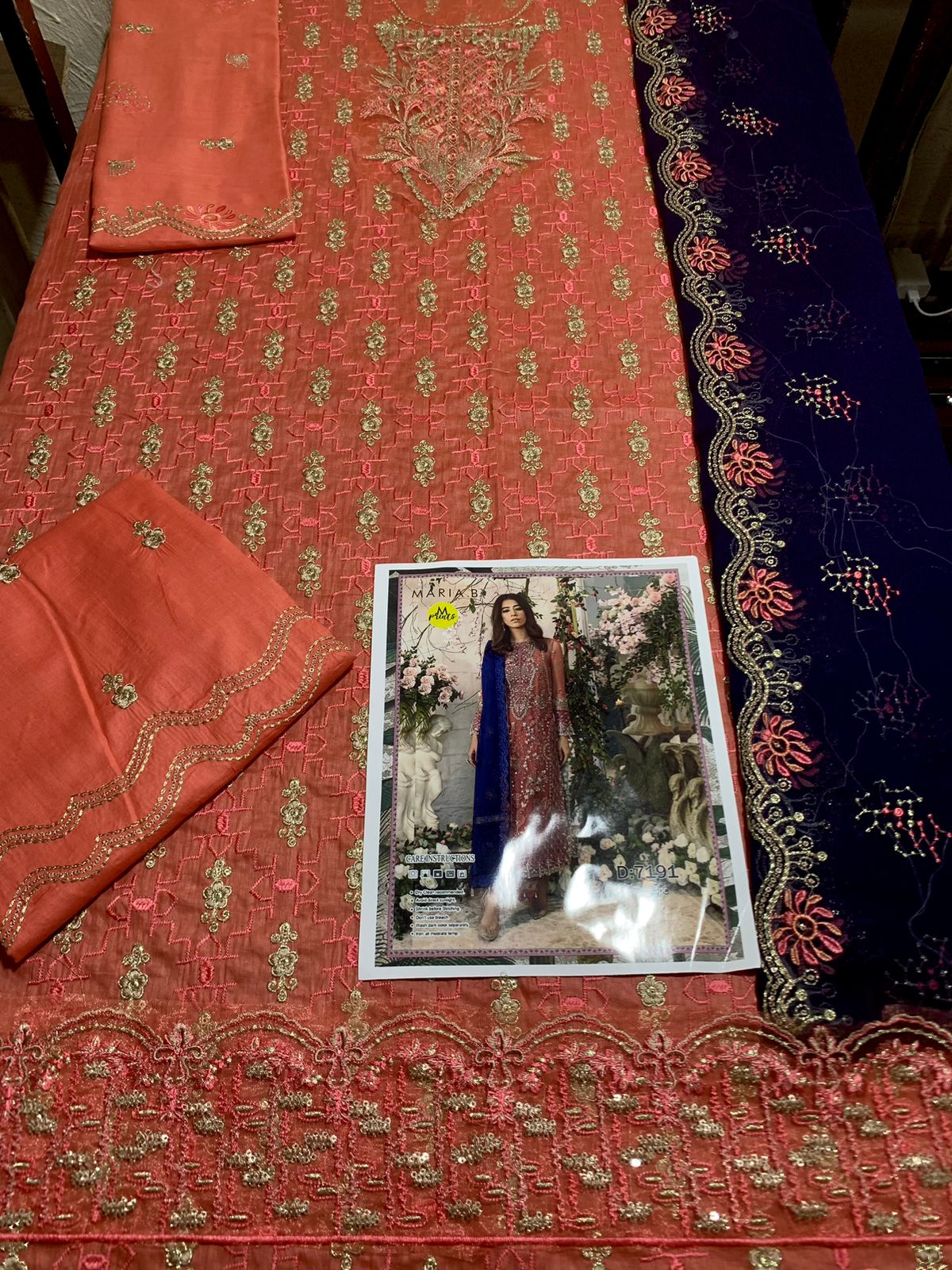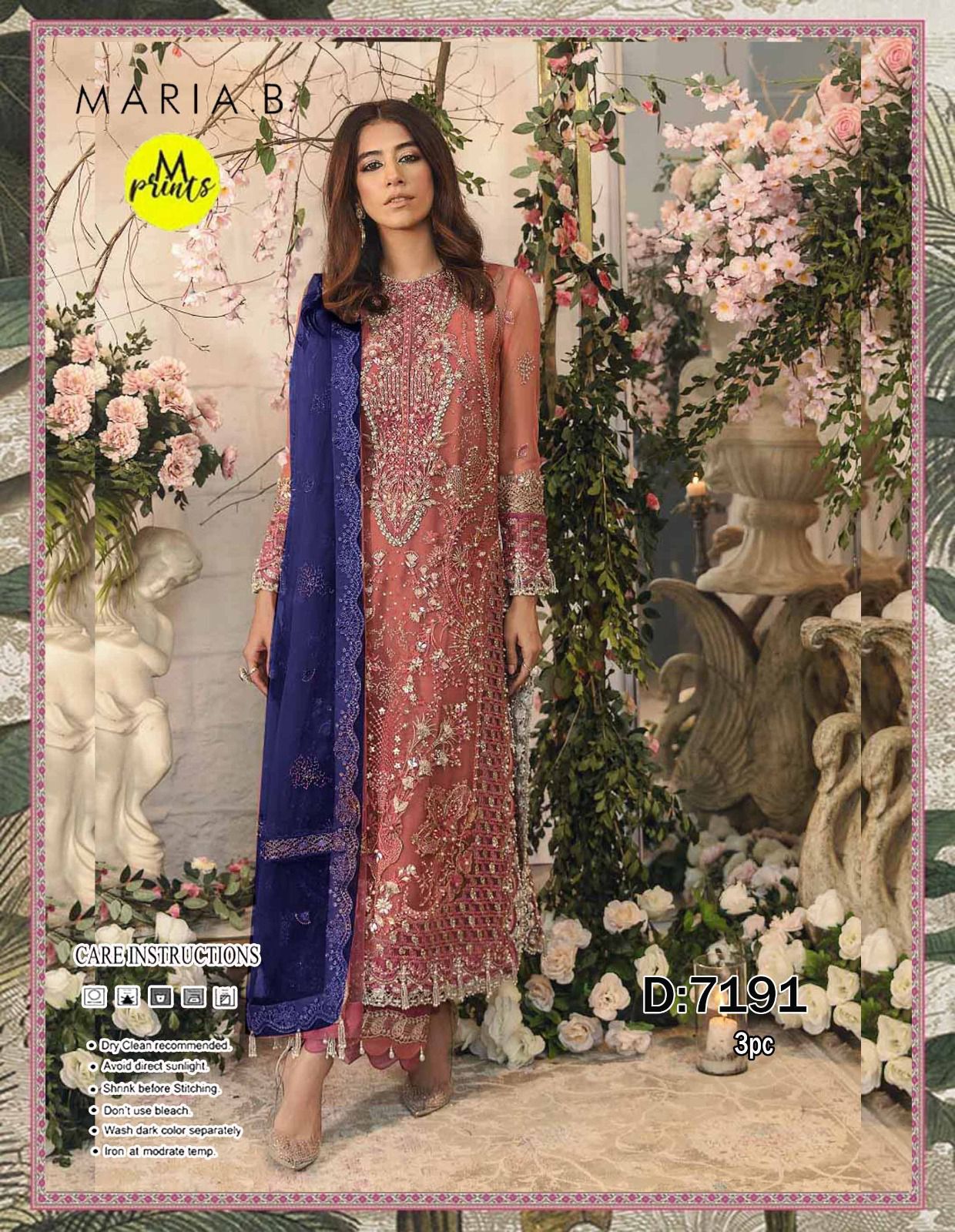 MARIA.B Summer lawn heavy embroided collection arrival for eid 3pc lawn fully embroider shirt with embroidered trouser & with embroidered bamber chiffon dupata