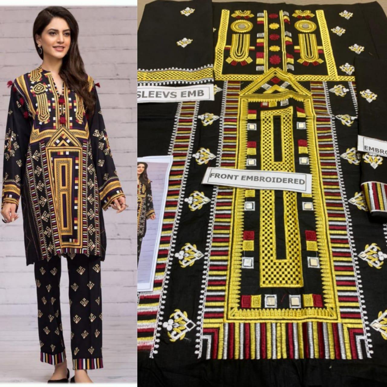 cross stich 2pc fully embrioded shirt with fully embrioded trouser