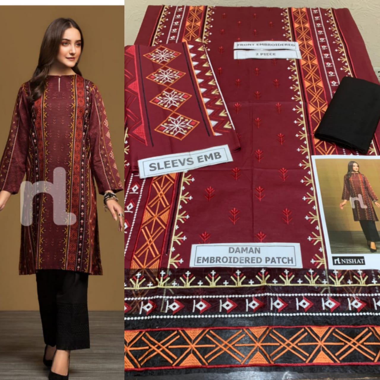 Nishat Embroided Lawn 2 Pc Suit with patch