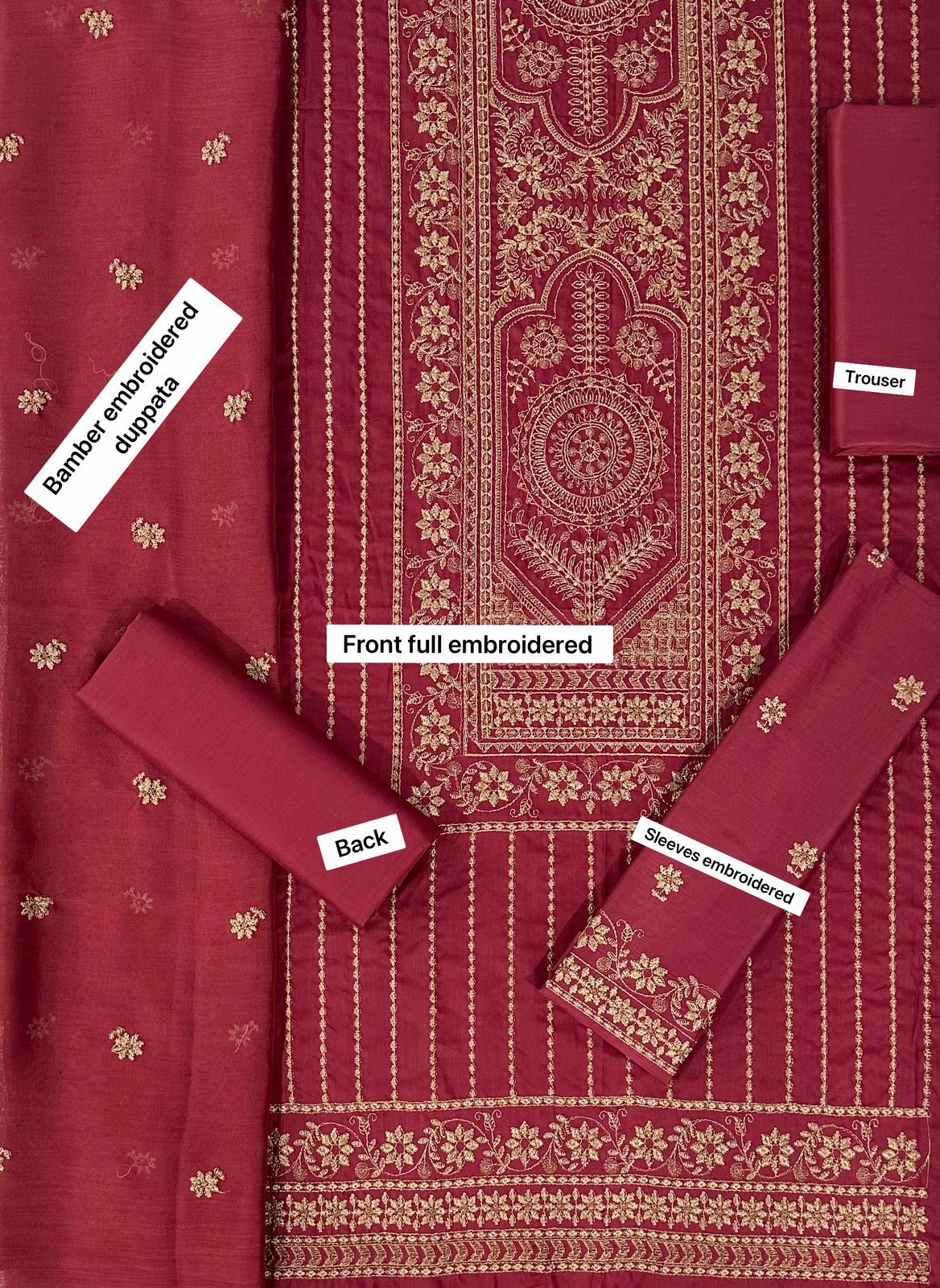 3pc lawn fully embroided shirt with plane trouser & with embrioded bamber chifoon dupata